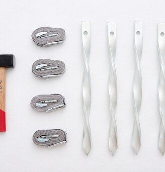 • Die richtige Befestigung. Ein, oder sogar zwei Reihen Gewichte machen deine Zeltgarage bodenständig. Doppelt hält besser: Wer ein Abspannset befestigen kann, der macht seine Zeltgarage absolut winterfest.